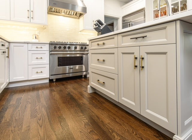Lew's Two Tone Series Cabinet Knobs and Drawer Handles in Matte Black and Brushed Brass